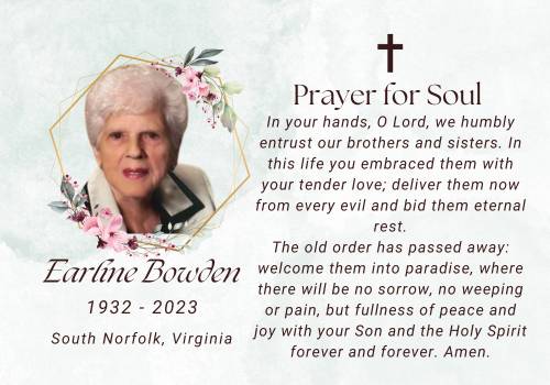 Ms. Earline Bowden passed away and her funeral will be held Saturday, June 10, 2023, at 11:00 AM at Southside Baptist Church. We offer our love and sympathy to her family and friends, as her church family also mourns her passing. Please join us as we remember her in prayer.